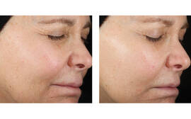 Results from a 12-week study conducted in 52 patients with mild-to-moderate photodamage with Even Tone Correcting Serum. A subset of subjects in this study applied Even Tone Correcting Serum twice daily and AlphaRet Overnight Cream nightly (N=10). Unretouched clinical photography on clean, product-free skin.